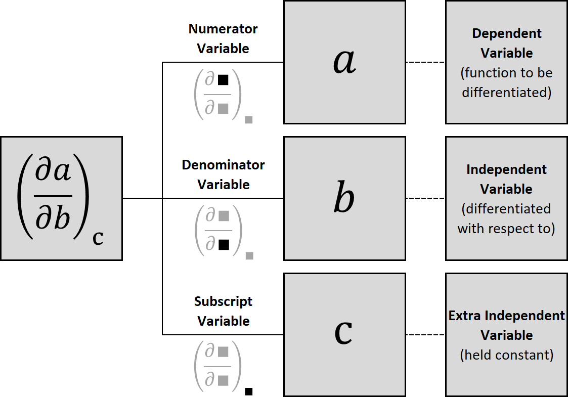 This short small group activity introduces students to the Leibniz notation used for partial derivatives in thermodynamics, in which the variables being held constant are given explicitly. Students are guided to associate variables to their proper categories.