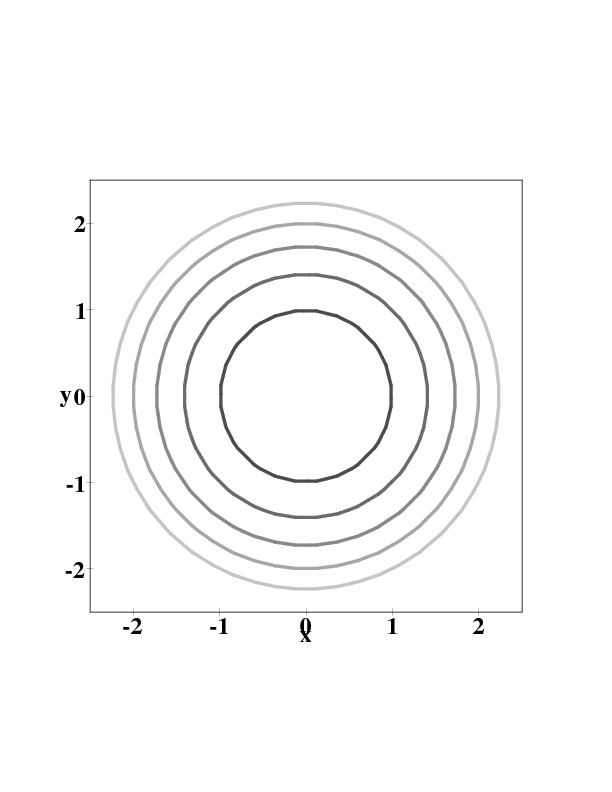 You are in a valley whose height is given by \(h = a x^2 + a y^2\) where \(a={1\over10}\,{\hbox{ft}\over\hbox{mi}^2}\).