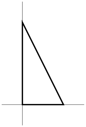 Write down as many integrals as you can think of for the area of the triangular region \(R\) shown, with vertices at \((0,0)\), \((1,0)\), and \((0,2)\). Evaluate at least two of these integrals.