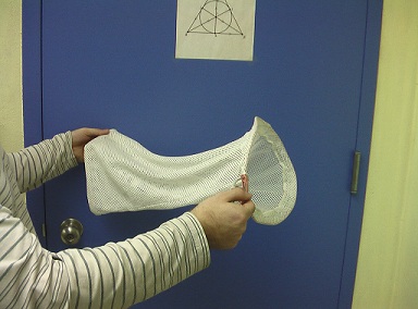 Make a "butterfly net" with a hanger or other wire loop and a cloth lingerie bag. The butterfly net is a used when discussing Stokes' Theorem. By changing the shape of the net, you can demonstrate how different surfaces might have the same closed boundary. By bending the wire, you can show what it means to change the boundary.