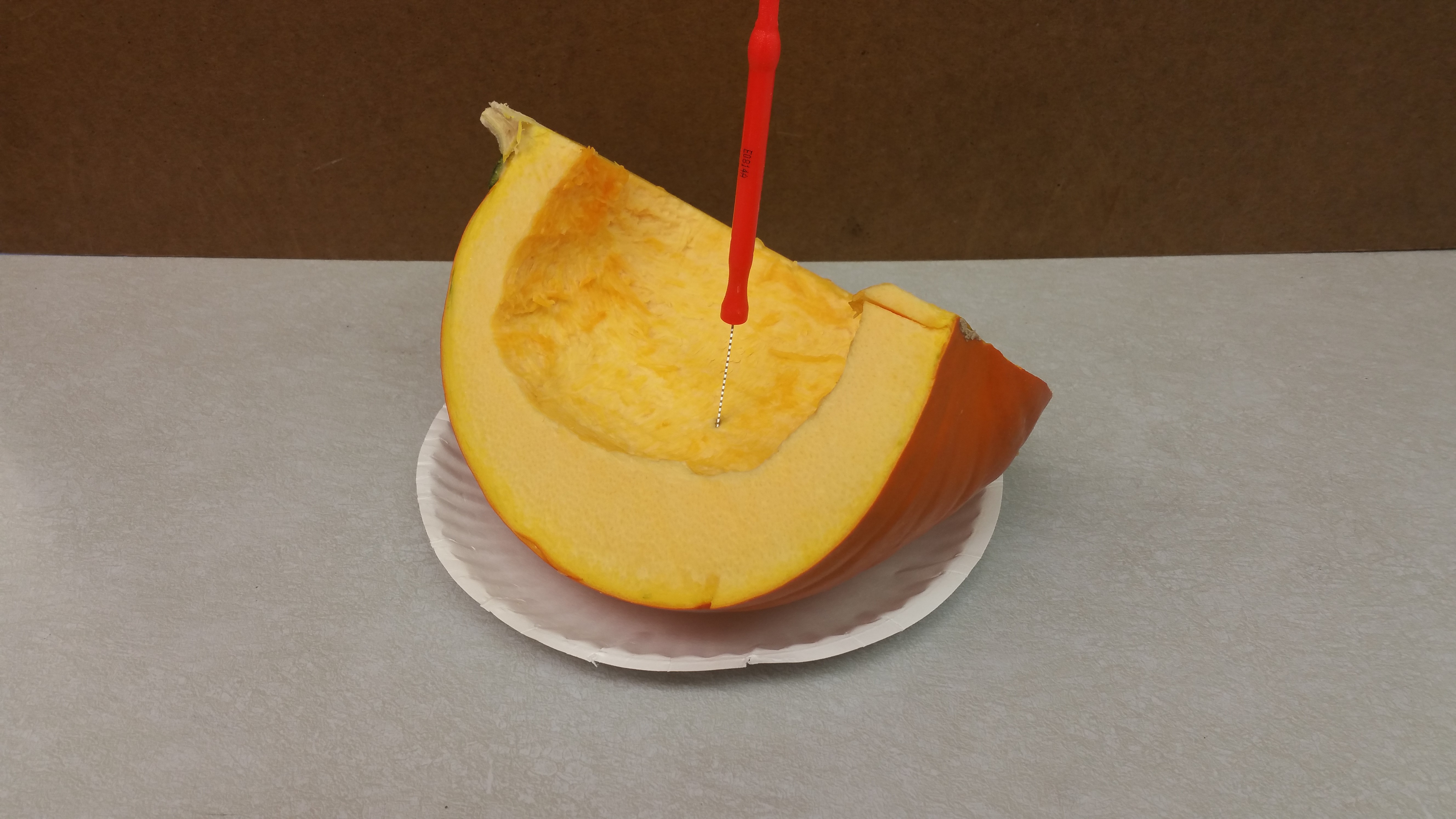 A pumpkin that has been sectioned into quarters can be used as an interactive physical representation of a spherical coordinate system.