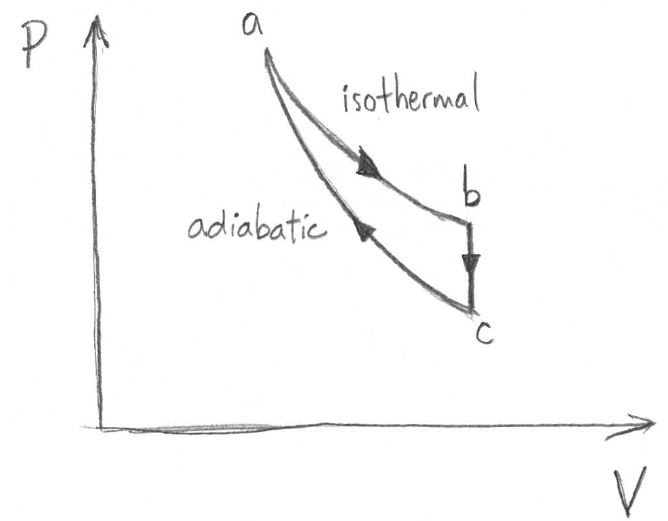 where the isothermal step occurs at constant temperature, and the adiabatic step has no energy transfer by heating.
