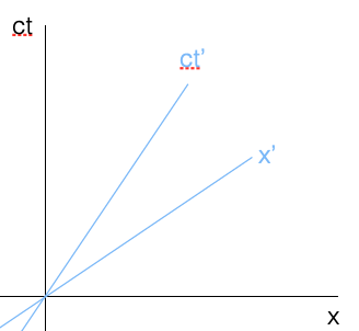 - Draw two spacetime vectors, one on the \(ct'\) axis and one on the \(x'\) axis.