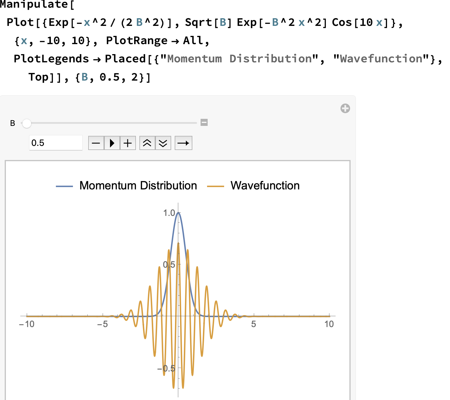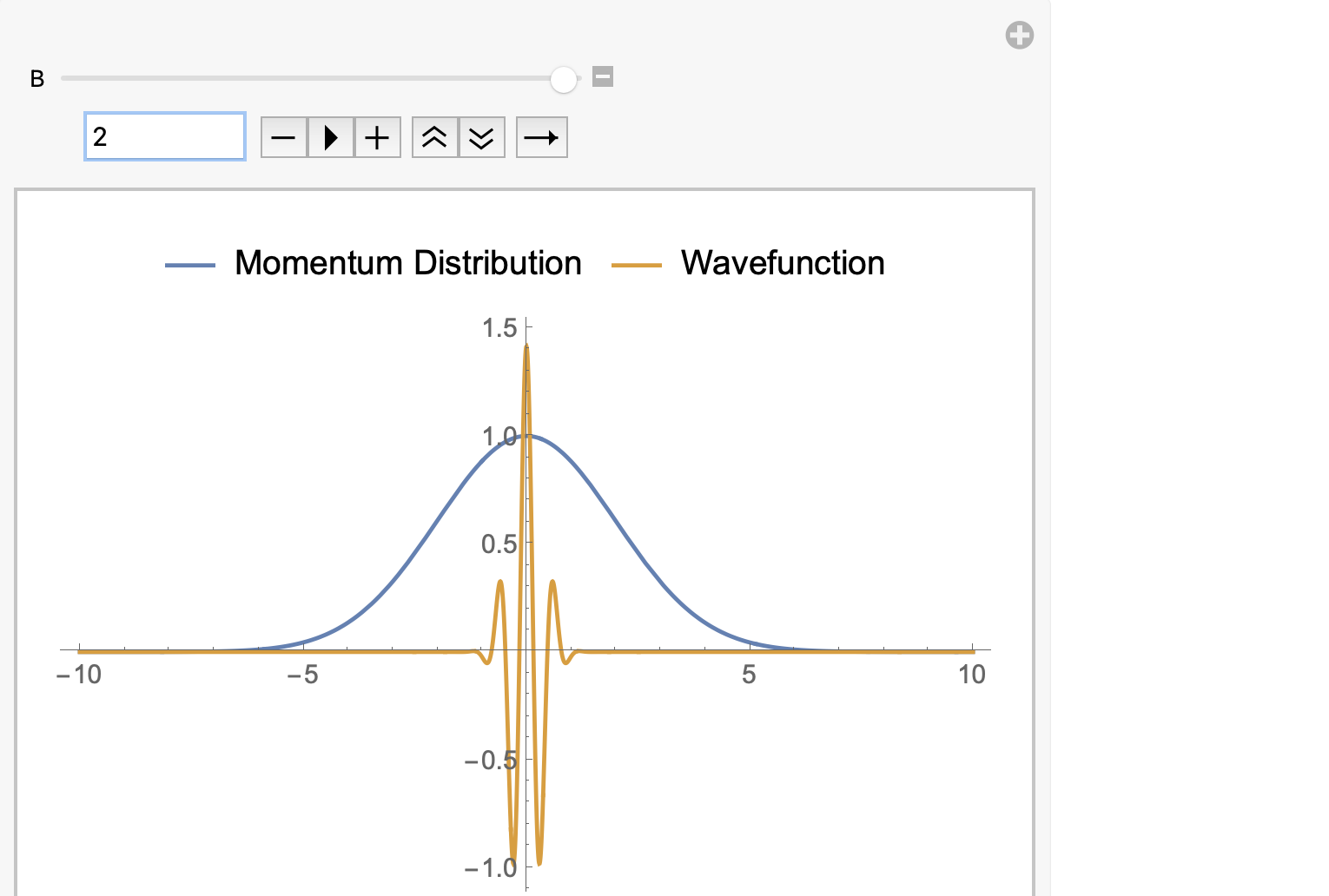 I see that the width of momentum distribution is \(\beta\) and the width of wavepacket envelope is \(\hbar^2/2\beta^2\). As the momentum distribution gets narrower (\(\beta\) decreases), then the wavepacket gets wider.