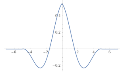 Separating this out into real and imaginary parts: \[\psi(x) = \begin{cases} \sqrt{\frac{3}{2b^3}}\;\left(\cos\left(\frac{p_0x}{\hbar}\right)+i\sin\left(\frac{p_0x}{\hbar}\right)\right)(b-|x|) & |x|<b \\ 0 & |x| > b\end{cases}\] Now we can easily plot this (\(b=5\)):
